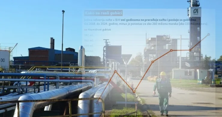 Zaključno sa junom prošle godine, jedina rafinerija u zemlji posluje sa gubicima većim od 914 miliona maraka (oko 467 miliona eura), a u prvih šest mjeseci 2025. godine su poslovali sa minusom od oko 16 miliona eura, pokazuju finansijski izvještaji.