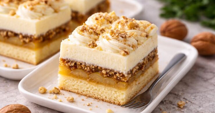 Spoj pečenih jabuka, mekanog biskvita, oraha i lagane kreme daje poznati ukus u mnogo jednostavnijoj i bržoj varijanti koja osvaja na prvi zalogaj.