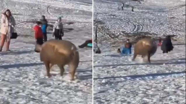 Ogromna svinja iznenadila skijaše na Zlatiboru, a djeca vikala: Pepa Prase
