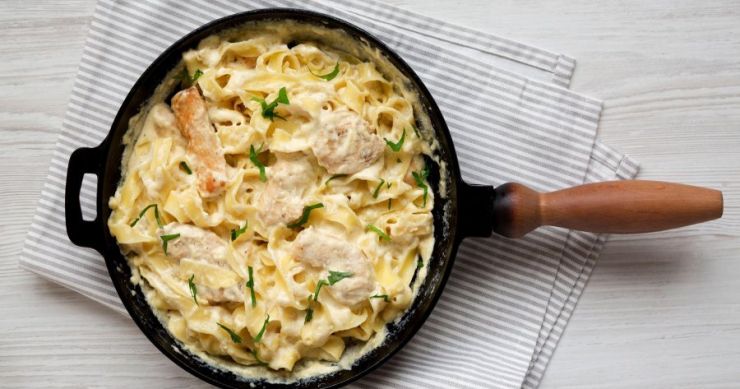 U tavi s piletinom pomiješajte senf, veliki prstohvat soli, svježe mljeven crni papar po želji i veći dio timijana. Zatim dodajte ocijeđenu tjesteninu, ricottu, Grana Padano i veći dio sačuvane škrobne vode od kuhanja tjestenine.