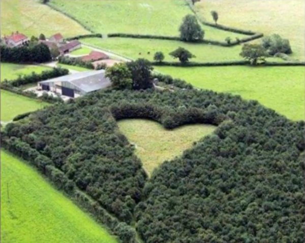 2012. godine muškarac po imenu Andi Kolet preletio je preko farme Hoves u balonu kada je usred hrastove šume ugledao travnjak u obliku srca.