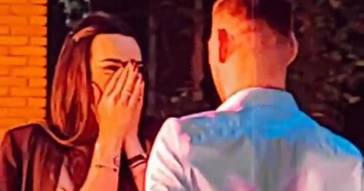 Pored bazena u dvorištu vile, organizovana je i bakljada, a fudbaler je uz muziku kleknuo i zaprosio Kaću koja je rekla da.