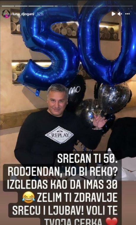 Proslavi su prisustvovali: njegova starija kćerka Luna Đogani, njen suprug, Marko Miljković, mala Mia Miljković, Nina Đogani i njen dečko, ali i nova djevojka Gagija Đoganija.