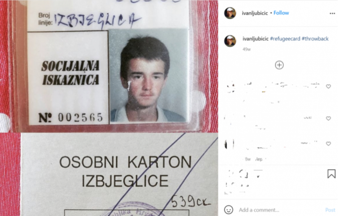 No, iza njega jako je težak životni put. O tome svjedoči i fotografija iz djetinjstva koju je objavio na svom Instagram profilu. Na njoj se vidi socijalna iskaznica na kojoj je Ljubičićeva fotografija uz natpis “izbjeglica”.