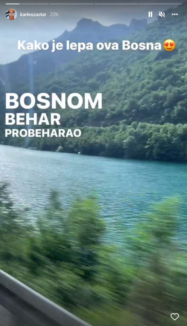 – Kako je lijepa ova Bosna – napisala je Karleuša, a u pozadini se čula pjesma Dine Merlina “Bosnom behar probeharao”.