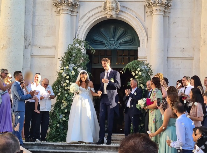 Mlada je blistala u šarmantnoj vjenčanici spuštenih ramena te raskošnom velu, dok je Ante plijenio pažnjom u tamnoplavom odijelu te bijeloj košulji. Mnogobrojne zvanice posule su novopečene supružnike laticama pa su se svi zajedno fotografirali.
