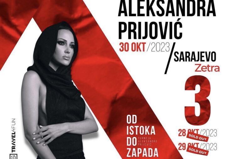 Folk pjevačica Aleksandra Prijović je zakazala treći koncert u Zetri te obradovala sarajevsku publiku "Sarajevo, zahvaljujući vama družimo se i na trećem koncertu 30 oktobra", napisala je...