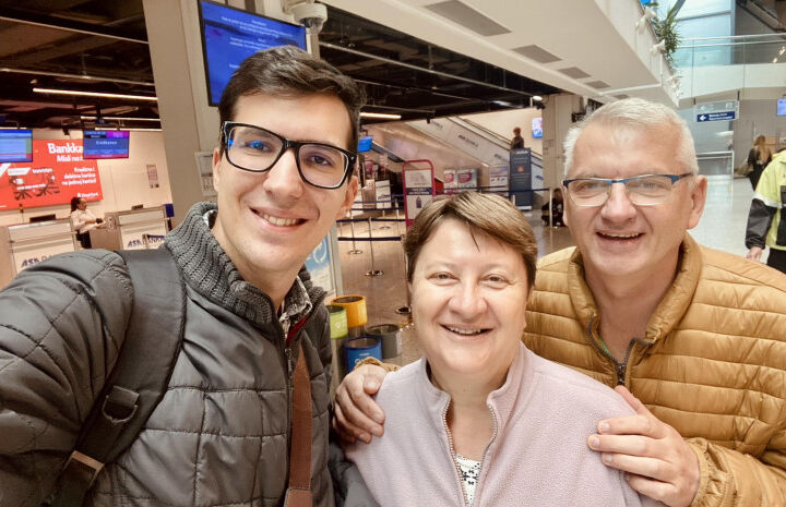 Poznati bosanskohercegovački meteorolog Nedim Sladić danas odlazi na školovanje u Veliku Britaniju On je objavio fotografiju sa roditeljima sa aerodroma u Sarajevu - S Božijom pomoći i...