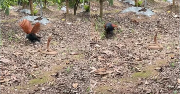 Unatoč tome što je riječ o kobri ona je bila potpuno nemoćna u ovoj borbi. Savladana je preciznim udarcima kljuna.