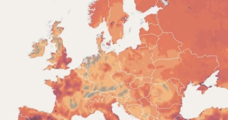 Slovenija je žuta, dok je situacija u Italiji malo složenija. Južni dijelovi Italije, uključujući Siciliju, obojeni su tamno crvenom bojom, što označava jesenji ugođaj već u avgustu.