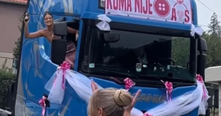 Na kamionu su beogradske registarske tablice, a očigledno je da je scena snimljena tokom svadbenog veselja.
