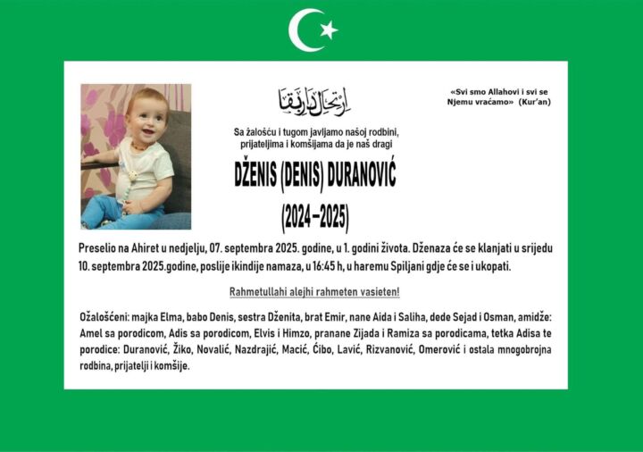 Danas će u Konjicu biti klanjana dženaza Dženisu Duranoviću, dječaku koji je preselio na ahiret u prvoj godini života Njegova smrt potresla je cijelu lokalnu zajednicu, ali i širu javnost,...