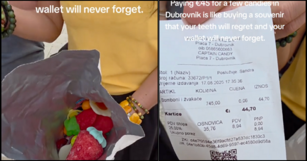 Španska turistkinja Denis Caval tokom odmora u Dubrovniku doživjela je neugodno iznenađenje kada je u jednoj trgovini kupila gumene bombone, a na blagajni je dočekao račun od čak 45...