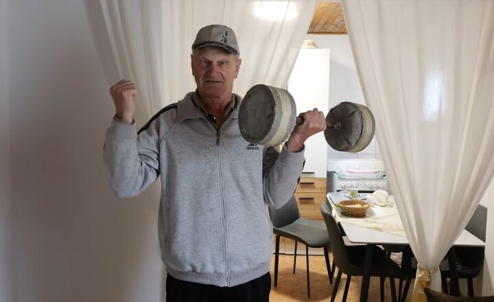 Ilija Petrović iz Fojnice već je odavno ušao u treću dob života Međutim iako živi samto mu ne smeta da svako jutro diže tegove koje je sam izradio od betona i kutija Nakon gimnastike odlazi...