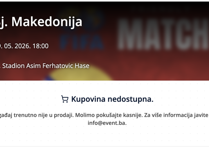 Veliko interesovanje za predstojeću utakmicu između Bosne i Hercegovine i Sjeverne Makedonije rezultiralo je brzom rasprodajom ulaznica Ulaznice su nestale za otprilike sat i petnaest minuta od...