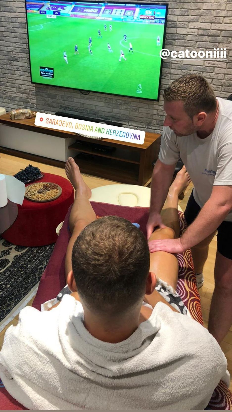 Dijamant je svoje pristustvo potvrdio fotografijom na Instagramu na kojoj se opušta tokom masaže, piše Klix.ba.