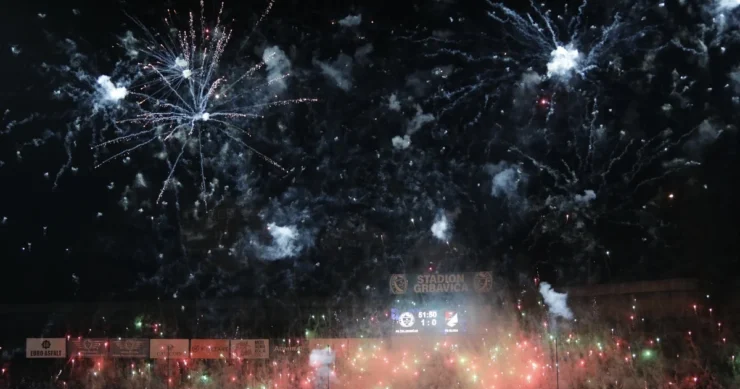 U tim trenucima uslijedio je vatromet na južnoj tribini Grbavice. Željini navijači zapalili su baklje i priredili predivan dekor vatrometom kojim je obasjan cijeli stadion.
