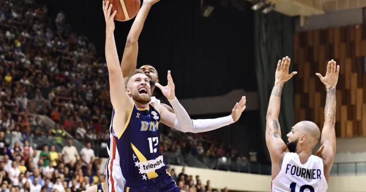 Dvorana Mirza Delibašić u Sarajevu ugostila je duel BiH i Francuske, a obje selekcije igrale su sa svojim najvećim zvijezdama. Za osvajače srebrene medalje na posljednjim Olimpijskim igrama nastupile su NBA i euroligaške zvijezde.To je privuklo više od 5.000 gledalaca, a nošeni pjesmom i sjajnom atmosferom u Skenderiji naša reprezentacija je sjajno ušla u duel.Fantastičnu seriju napravili su izabranici Adisa Bećiragića i nakon polovine prve četvrtine imali prednost od 16 poena razlike (22:6). Istakla se sjajna odbrana i nekoliko trojki koje su pogađali Jhon Roberson i Jusuf Nurkić.