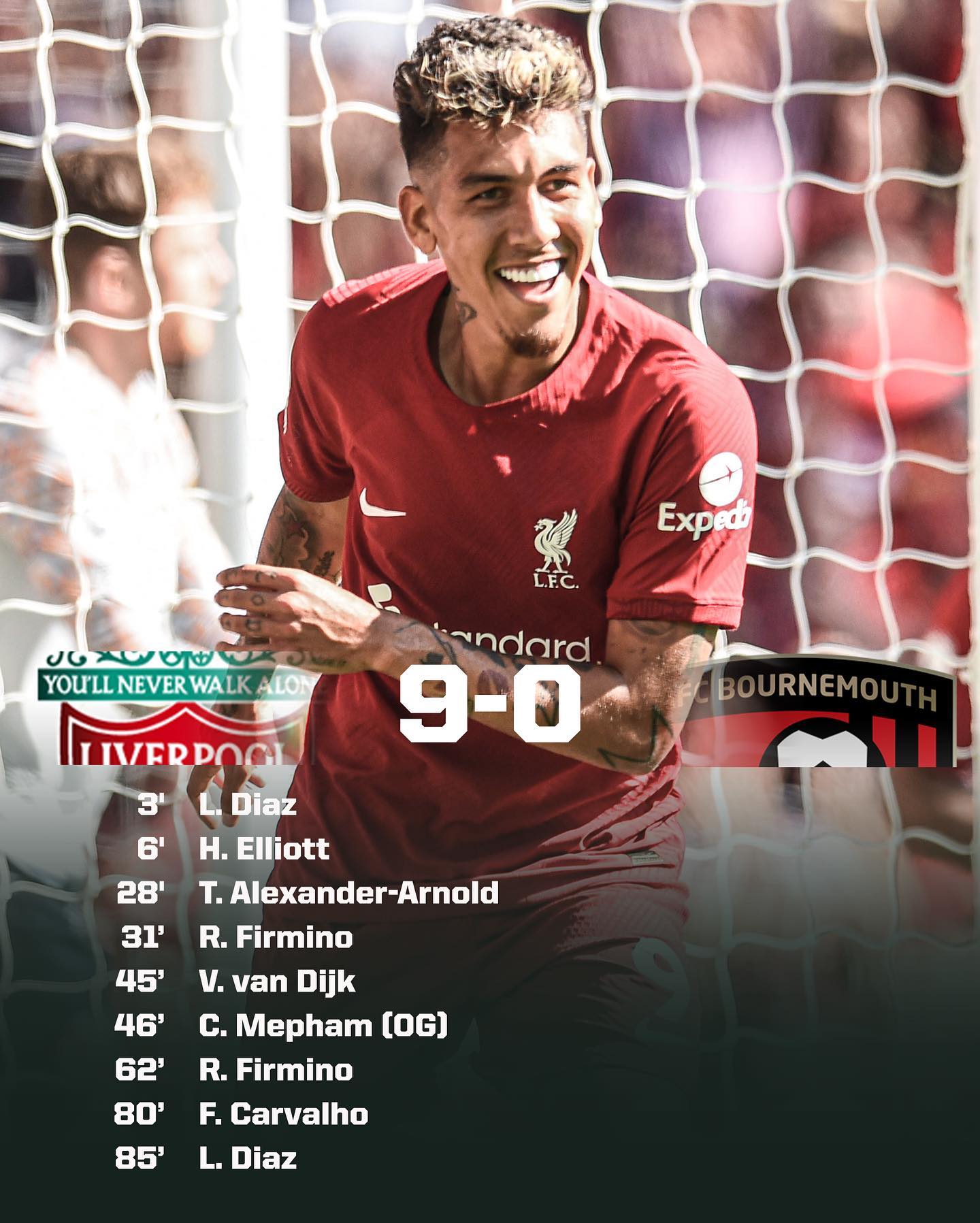 Danas smo vidjeli pravo ludilo na utakmicama u Engleskoj. Liverpool je tek u četvrtom kolu došao do trijumfa, ali na nevjerovatan način. Redsi su savladali Bournemouth rezultatom 9:0.Najnevjerovatnije od svega zvuči podatak da Mohamed Salah nije učestvovao ni u jednom od devet golova Liverpoola.