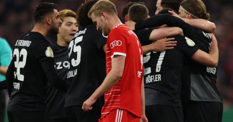 Bayern je poražen od Freiburga jer su gosti u 95. minutu dali gol iz penala. Lucas Holer je dao gol za veliku radost igrača Freiburga koji su izbacili najmoćniji njemački tim iz Kupa.Sve je za Bavarce krenulo na najbolju mogući način budući da je Dayot Upamecano doveo domaće u vodstvo na asistenciju Kimmicha.