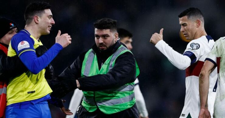 Momak u dresu Al Nasra utrčao je na teren i prišao Kristijanu Ronaldu. U momentu kada se približio Portugalcu obezbjeđenje je uspjelo da ga zaustavi, pa se okrenuo ka svom idolu i uz osmijeh mu pokazao palac okrenut ka gore.