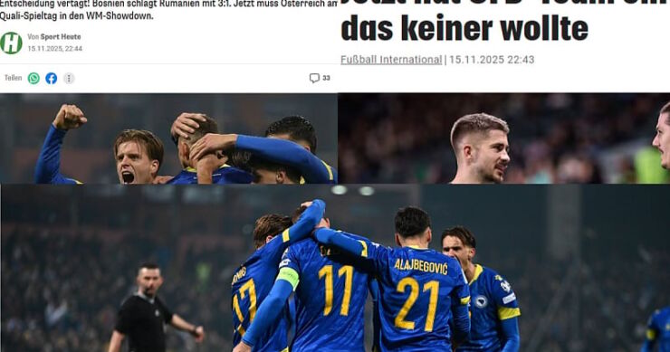 “Pobjeda Bosne od 3:1 protiv Rumunije spriječila je Austriju da osigura ranu kartu za Svjetsko prvenstvo”, naslov je na portalu DerStandard.de.