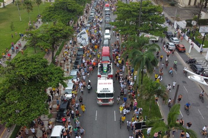 Kovčeg u kojem počivaju posmrtni ostaci nogometnog Kralja Edsona Arantesa Do Nascimenta, poznatog kao Pele, nakon prolaska ulicama Santosa stigao je na njegovo posljednje počivalište To je...