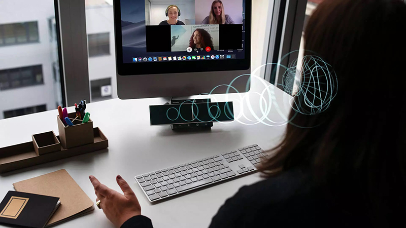 Značajna poslovna primjena mogla bi se ostvariti u video‑konferencijama organizovanim u radnom okruženju ili kod kuće. Povezivanjem SoundBeamer uređaja s računarom mogu se upućivati video i audio pozivi bez stvaranja prekomjerne buke i ikakvog opterećenja drugih osoba koje se nalaze u istom okruženju (bez nošenja slušalica). Nedostatak uređaja je u tome što korisnici neće smetati drugima, ali okolina može smetati njima, jer čuju sve što se dešava u okruženju, što slušalice u priličnoj mjeri poništavaju.