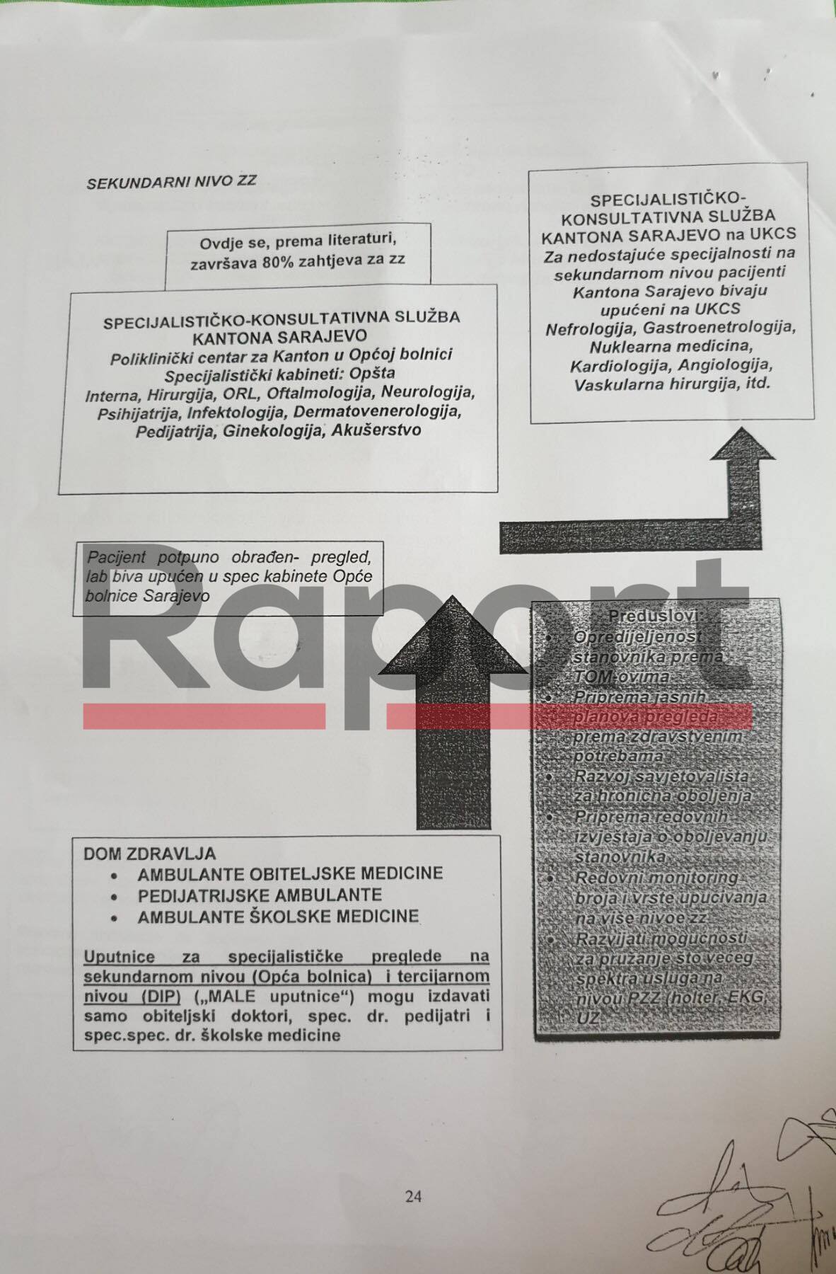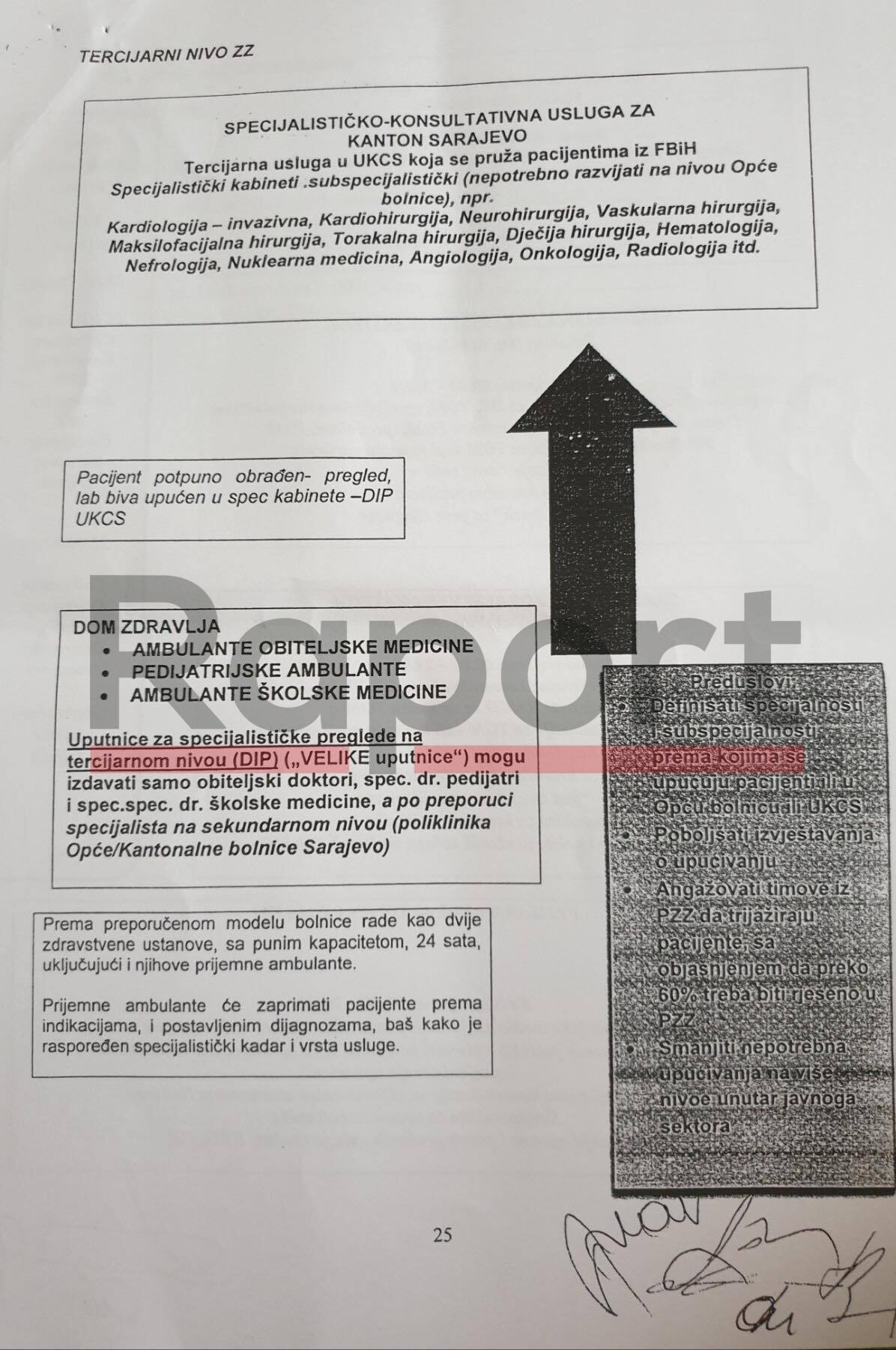 U tom dijelu se navodi da ukoliko pacijentu ne može kompletnu uslugu pružiti primarni nivo, odnosno Dom zdravlja da se on upućuje specijalisti u sekundarnom nivou (Opća bolnica), a samo u “izuzetnim slučajevima” na tercijarni nivo (KCUS).