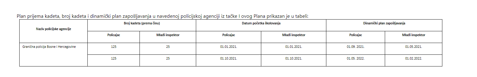 Do kraja godine trebao bi otpočet proces prijema 125 policajaca i 25 inspektora u Graničnoj policiji Bosne i Hercegovine, piše PRESS. Prvi korak bit će raspisivanje javnog konkursa, a nakon toga odabir kandidata koji će biti poslani na školovanje.