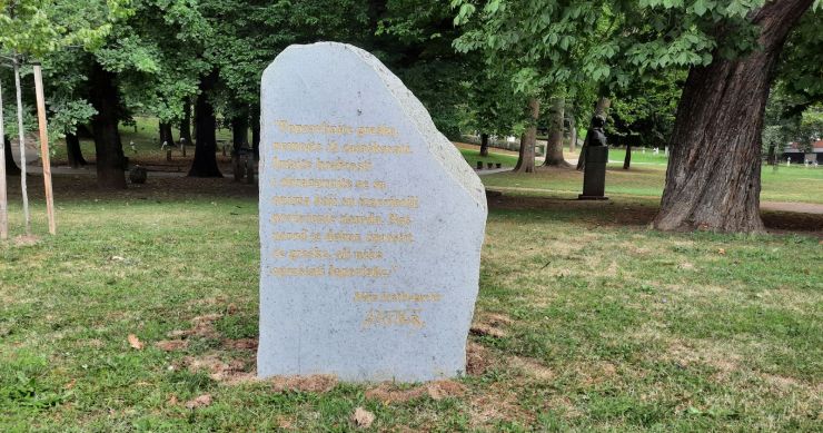 “Popravljajte greške, nemojte ih zataškavati. Imajte hrabrosti i obračunajte se sa onima koji su iznevjerili povjerenje naroda. Naš narod je dobar, oprostit će greške, ali neće opraštati lopovluke”, stoji u poruci na kamenu.
