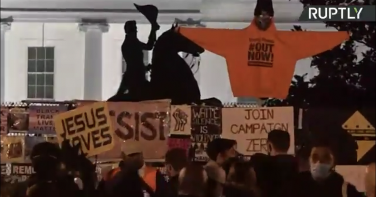 Ruska madijska kuća RT objavila je snimak iz Vašigtona, na kojem se vidi veliki broj ljudi okupljenih ispred Bele kuće. Jake policijske snage su ispred Bijele kuće, a kako prenose mediji došlo je i do hapšenja.
