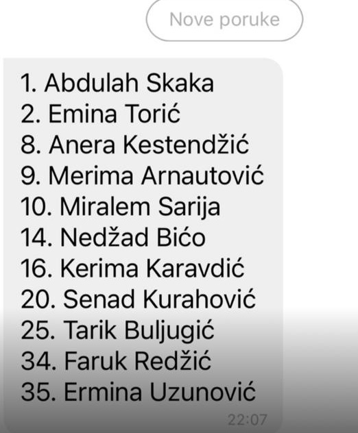 Interesantno je da na spisku nema unuke Alije Izetbegovića, Nađe Berberović. Ili je zbog stavova o LGBT populaciji ili je od straha da će ga kao nosioca liste Berberović prestići sa brojem glasova, što bi bilo pomalo ponižavajuće. Provjerite ima li vas ili vašeg favorita.