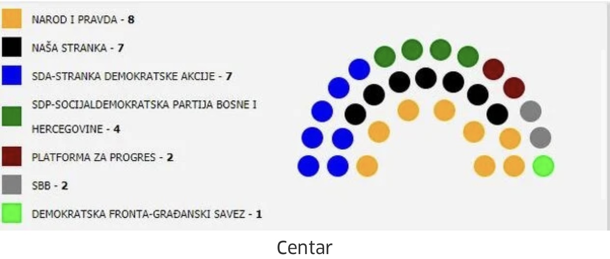 SDP je uspio osvojiti jedan mandat više pa imaju četiri vijećnika, SBB je izgubio dva pa su im ostala dva vijećnika, a DF je sa šest mandata pao na također dva. U Vijeće su ušli još i Platforma za progres i NBL sa po dva mandata.