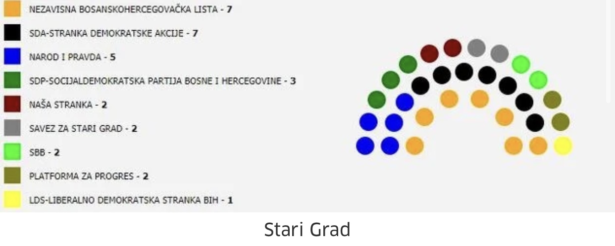 Nezavisna bosanskohercegovačka lista je dobila najviše glasova i imaju sedam vijećnika, a Narod i pravda pet. SDA je izgubila 1.500 glasova u ovoj općini i jedno vijećničko mjesto pa sada imaju sedam. Dva vijećnika je izgubila Naša stranka i sada imaju svega dva, SBB također ima dva mjesta u Općinskom vijeću koliko su osvojili i na prošlim izborima. SDP je zadržao svoja tri vijećnika, dok Savez za stari grad i Platforma za progres imaju po dva vijećnika.