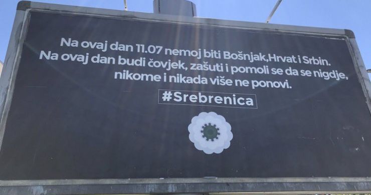 U Sarajevu je danas uoči 25. godišnjice genocida u Srebrenici osvanuo plakat s porukom, čiji autor nije naznačen, koja glasi: „Na ovaj dan 11. 07. nemoj biti Bošnjak, Hrvat i Srbin. Na ovaj dan budi čovjek, zašuti i pomoli se nigdje, nikome i nikada više ne ponovi“.
