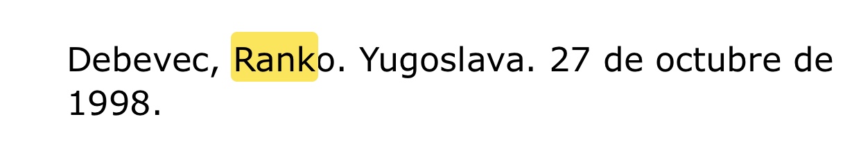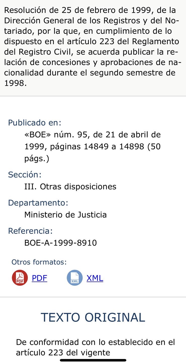 Zvanični podaci iz Španije koji dokazuju da je Debevec 28. oktobra 1998. godine primljen u državljanstvo Španije: