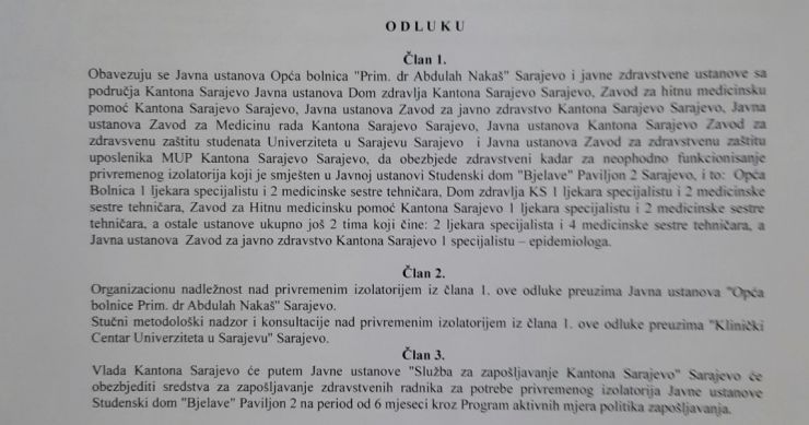 Odlukom je definisano i ko sve treba dati kadrove na raspolaganje, te da će organizacionu nadležnost preuzeti Opća bolnica, dok će nadzor i konsultacije vršiti KCUS.