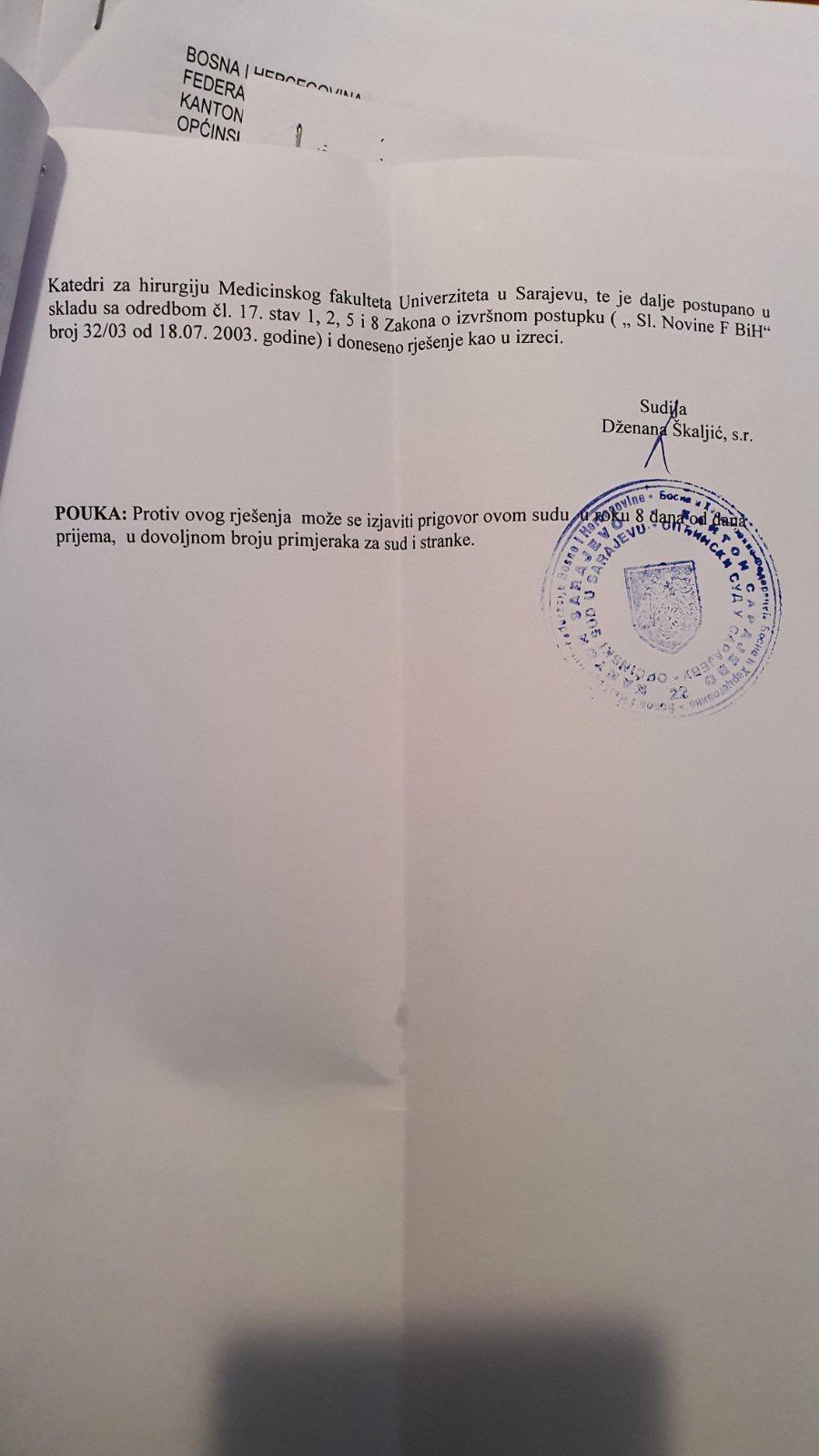 Općinski sud u Sarajevu kaznio je Medicinski fakultet novčanom kaznom od 4.000 KM, a dekanesu Semru Čavaljugu sa 2.000 KM, po tužbi prof. dr. Ismeta Gavrankapetanovića.