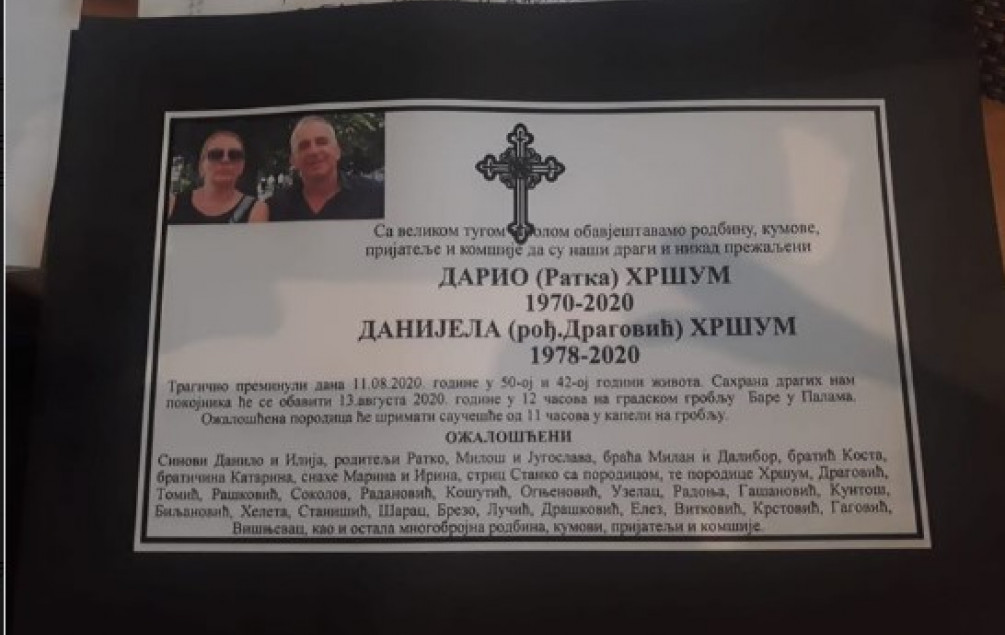 Sahrana će se obaviti danas u 12 sati, na gradskom groblju Bare na Palama.