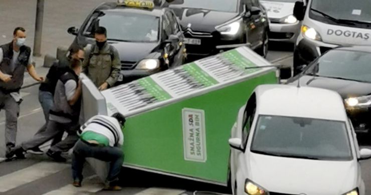 U centru Sarajeva danas je došlo do saobraćajne nesreće nakon što se u Titovoj ulici prevrnula predizborna prikolica Stranke demokratske akcije (SDA), piše PRESS.