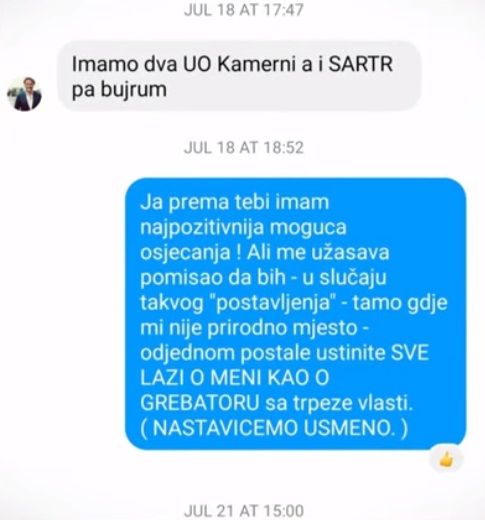 Iako nije javno rekao ko mu je poslao poruku iz prepiske se može, na osnovu fotografije pošiljaoca, vidjeti da je to učinio novi predsjednik Građanskog saveza (GS) Muhamed Fazlagić Fazla, a koji je nedavno pod čudnim okolnostima izabran za predsjednika ove stranke.