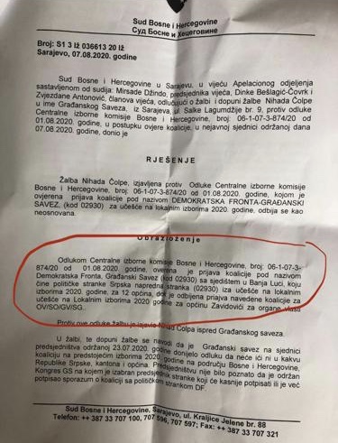 Koalicija Željka Komšića, Muhameda Fazlagića Fazle i Vučićevih naprednjaka otkrivena je na osnovu rješenja koje je Apelacioni odjel Suda Bosne i Hercegovine donio po žalbi svrgnutog predsjednika GS-a Nihada Čolpe.