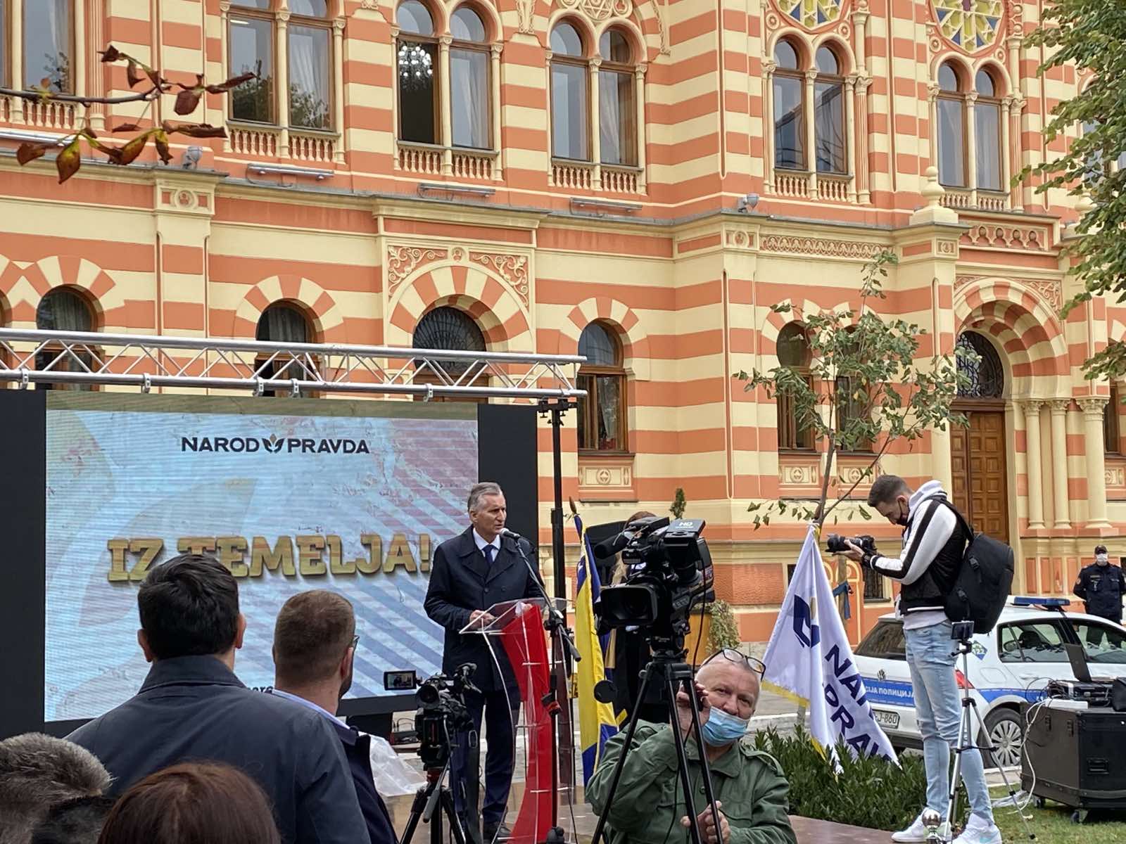 Politički direktor Naroda i Pravde Kemal Ademović u obraćanju ispred Vijećnice kazao je kako je rukovodstvo Naroda i Pravde u proteklim mjesecima obišlo sve dijelove naše domovine.