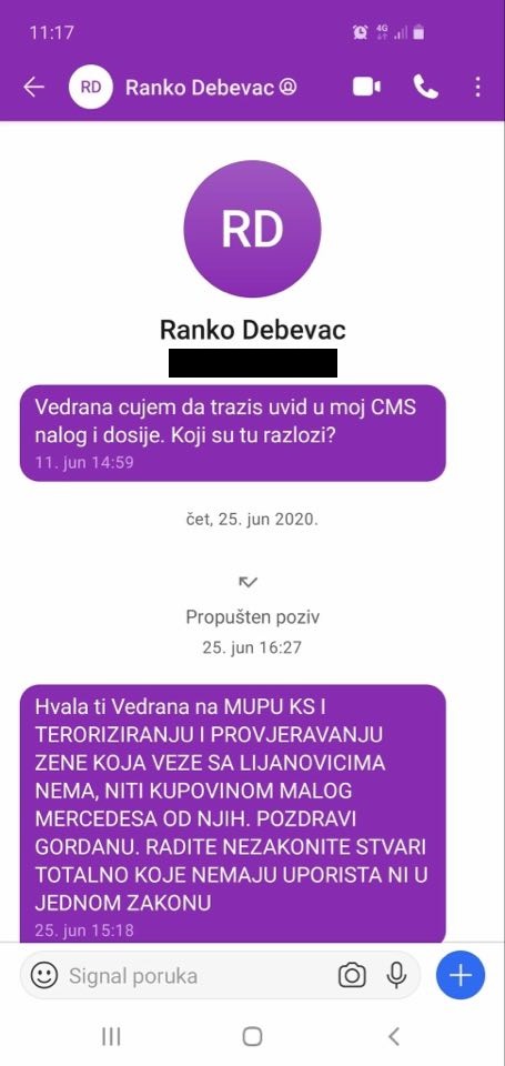 11.juni – 14,59 sati: Vedrana, čujem da tražiš uvid u moj CMS nalog i dosije. Koji su tu razlozi?