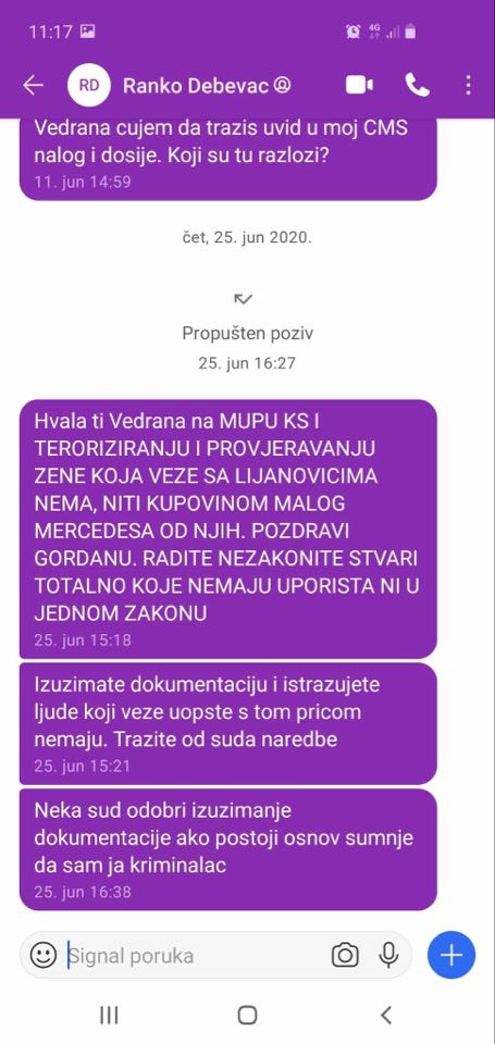 25.juni – 16,27 sati: Debevec zove Mijović, koja mu ne odgovara