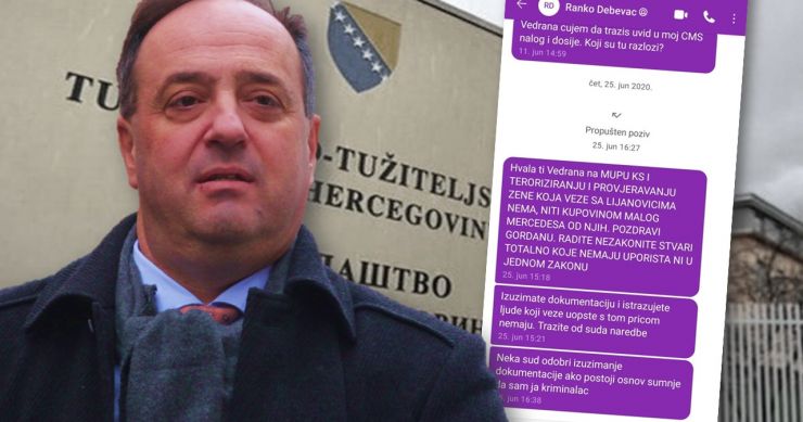 „Iz navedenih poruka koje mi je uputio se izvodi jasan i nedvosmislen zaključak da je koristeći se svojim utjecajem predsjednika Suda BiH došao do saznanja da sam kao postupajući tužilac uputila zahtjeve VSTV-u i MUP-u Kantona Sarajevo za dostavu službenih podataka kojima raspolaže o njemu. Uvidom putem TCMS sistema, vidljivo je da mi je Ranko Debevec kontaktirao (prvu poruku je poslao 11.6. 2020., a zatim me pozvao 25. 6., te nakon što mu nisam odgovorila na poziv, poslao je poruku), a sve nakon što sam uputila zahtjeve VSTV-u i MUP-u KS. Također mi sve do danas posredno preko kolega poručuje da prestanem istraživati jer ću u suprotnom snositi posljedice“, napisala je Mijović u prijavi.