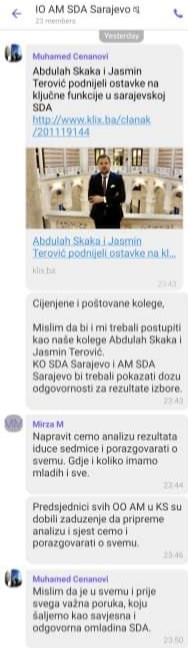 Burno je sinoć bilo u viber grupi Izvršnog odbora Asocijacije mladih SDA Sarajevo. Većina članova ove grupe pokazala je visok stepen odgovornosti i svjesnosti loših rezultata stranke kojoj pripadaju, dok je bilo i onih koji su sličnih razmišljanja kao i predsjednik SDA Bakir Izetbegović.