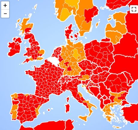 Sada su na toj mapi sve države obojene crvenom, narandžastom ili svijetlo narandžastom bojom.