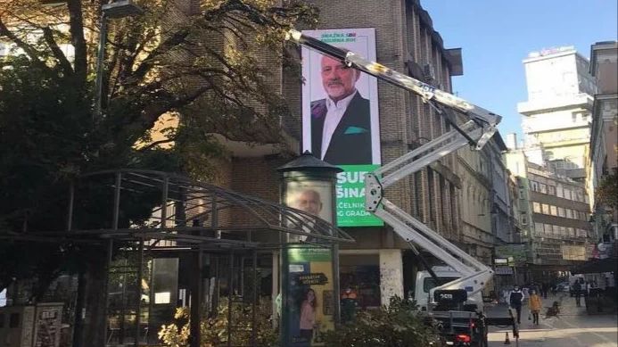 Naime, njegov veliki plakat može se vidjeti na zgradi u koja se nalazi preko puta Tržnice na glavnoj šetnici ulici Ferhadiji.